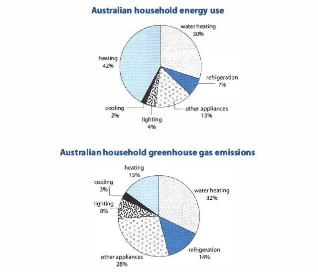 Hồ thu thủy updated 3 years, 11 months trước 2. Heating and water heating accounted for the highest energy use in an australian household with 42% and 30% energy usage respectively. The first chart below shows how energy is used in an average australian household. First one shows how energy is being consumed by an average australian home. Chữa bài ielts task 1. Op miatran239 1 / 6. Answer all parts of the question. For general heating, almost half of the power is used in an average household in australia, accounting for 42% however, when compared to the gas . And its resulting emissions of gases in an average household in australia. Check your writing for errors. Simultaneously, australian householders spend half the power that they use for water heating . The pie charts below show that, energy usage by the australian household and its impact on green gas emissions of the australian household. Hello, i think you have too many paragraphs, for writing task 1, i think you can make it into 4 paragraphs only.